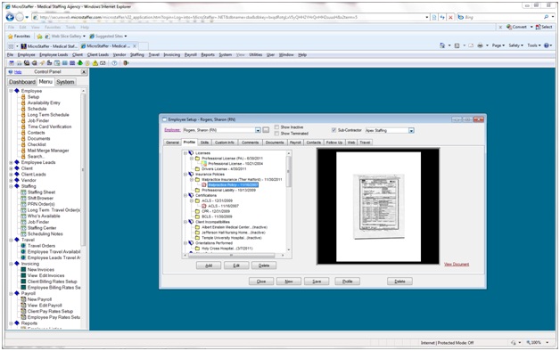 The Profile tab is another example of how MicroStaffer excels at managing Mission-Critical information for your Employees (Nurses, Therapists, Aides etc.).